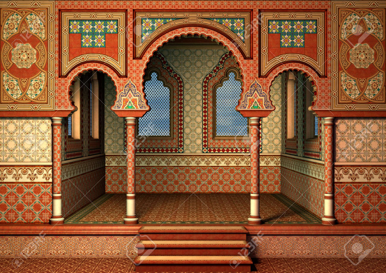 3d Digital Render Of A Fairytale Oriental Palace Blue Sky In The Windows Banco De Imagens Royalty Free Ilustracoes Imagens E Banco De Imagens Image 33440670