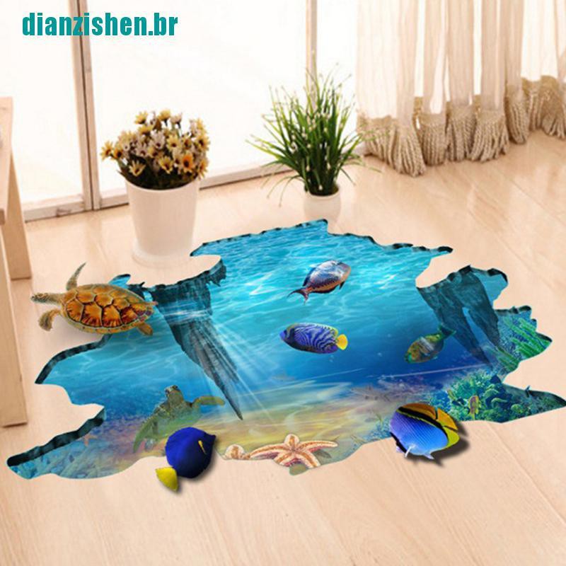 Diazithsen Adesivo De Parede 3d Fundo Do Mar Mundo De Peixe Tartaruga Para Parede De Quarto Shopee Brasil
