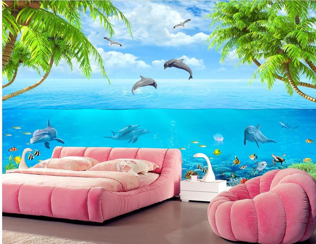 Grande Mural Papel De Parede Papel De Parede 3d Golfinhos Mar Tv Fundo Papel De Parede Mural Adesivos De Parede 862128 Wallpaper Squares Wallpaper Stylewallpaper Decal Aliexpress