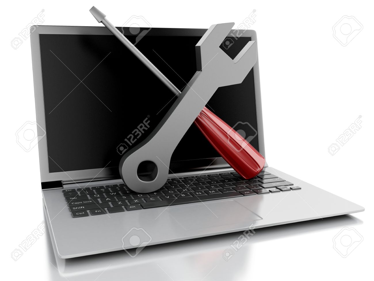 3d Renderer Image Tools On Laptop Pc Service Concept Banco De Imagens Royalty Free Ilustracoes Imagens E Banco De Imagens Image 42865036