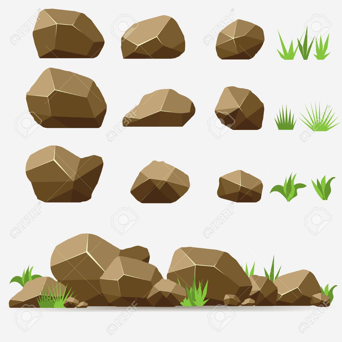 Rock Stone Set With Grass Brown Stones And Rocks In Isometric 3d Flat Style Set Of Different Boulders Royalty Free Cliparts Vetores E Ilustracoes Stock Image 57230858