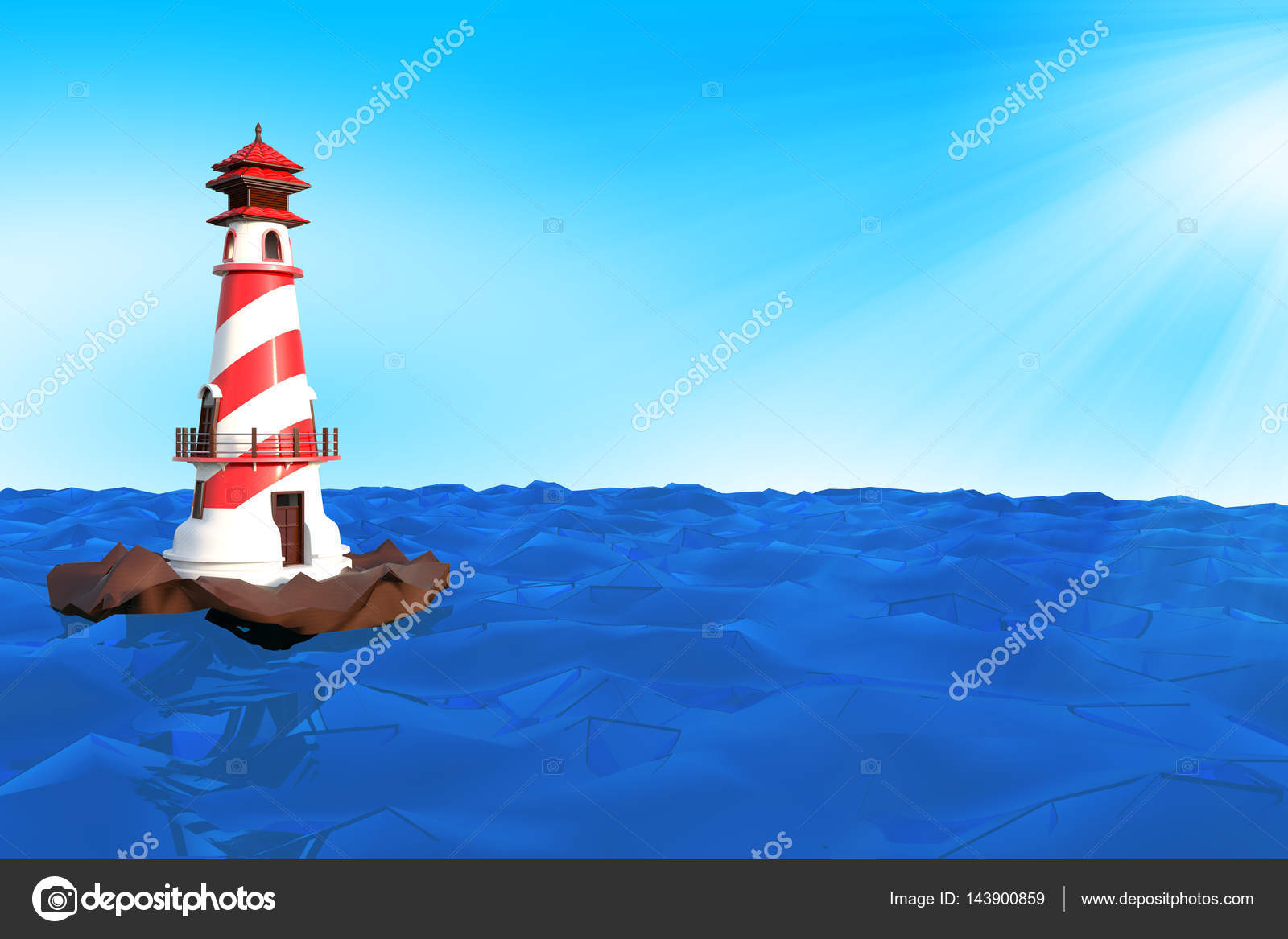 Renderizacao 3d De Um Farol Em Uma Pequena Ilha De Rock Com S Azul Stock Photo C Iceindymusic 143900859