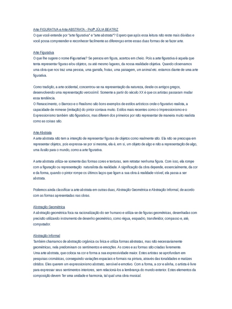 Artes Arte Figurativa E Arte Abstrata Arte Figurativa Figurativa Arte Abstrata