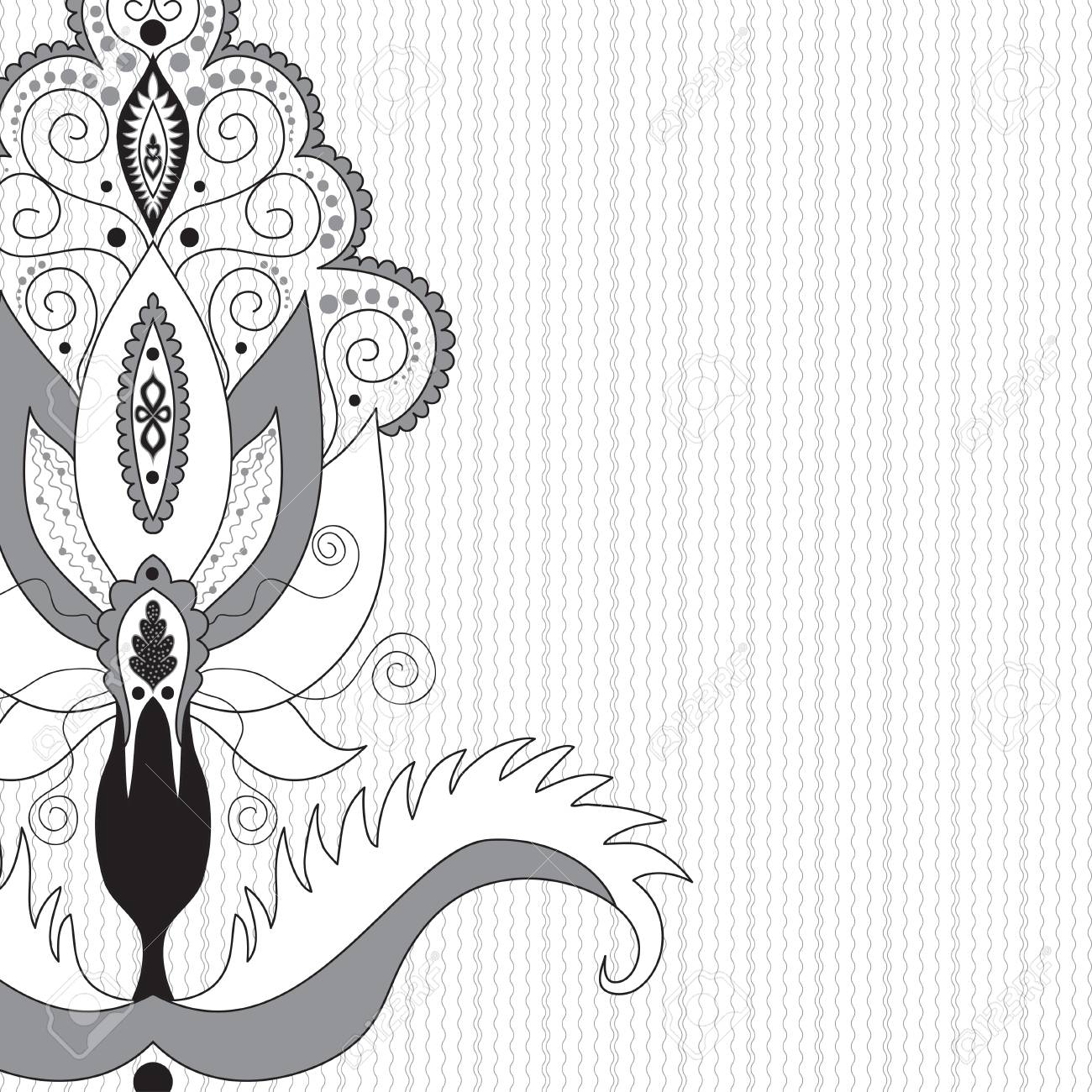 Fundo Abstrato Com Ondas E Elementos Florais Do Damasco Ilustracao Em Preto Branco E Cinza Ilustraciones Vectoriales Clip Art Vectorizado Libre De Derechos Image 71783856