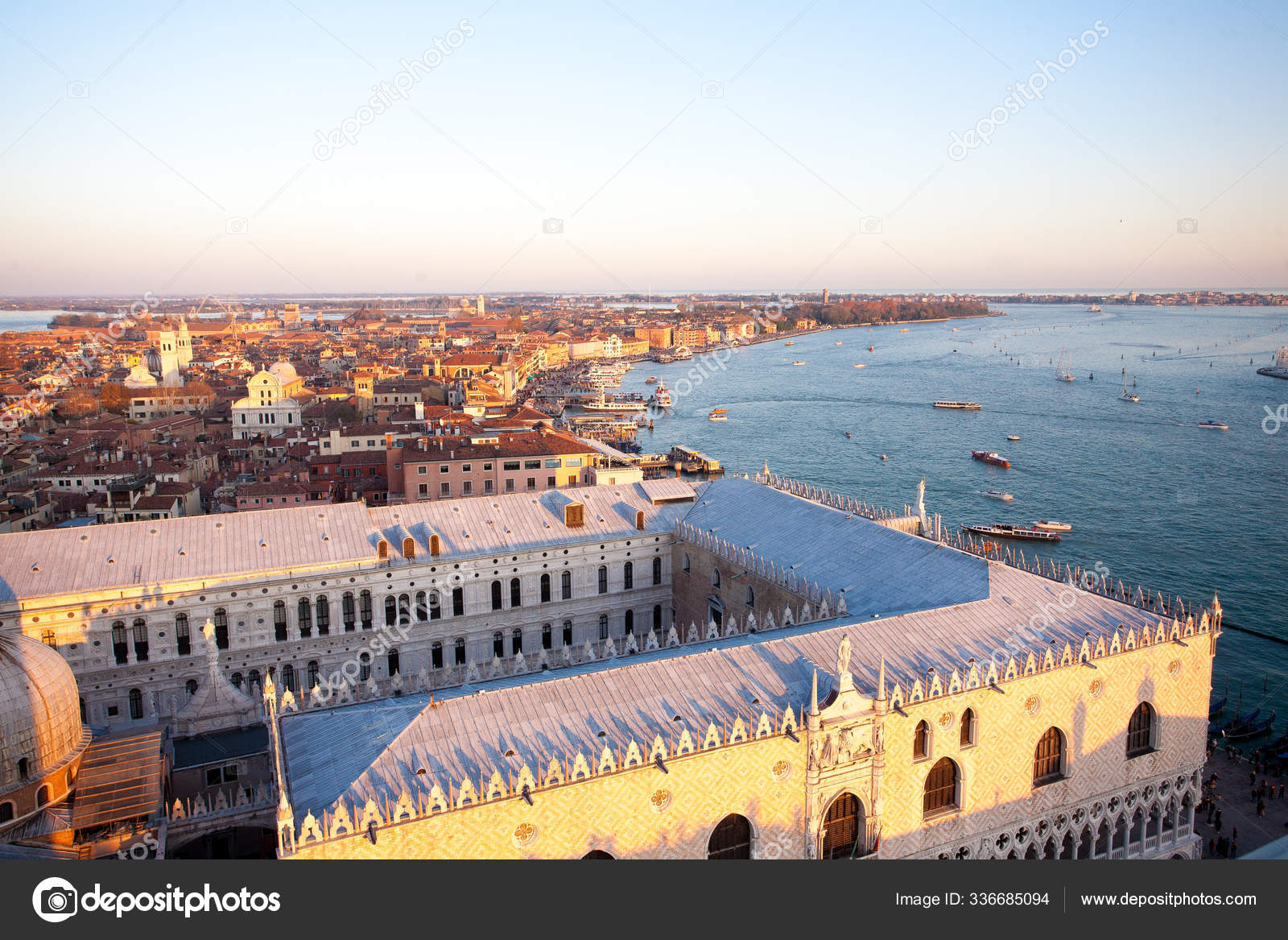Vista Aerea Veneza Amanhecer Italia Vista Ducal Palacio Marco Italiano Fotos Imagens De C Panthermediaseller 336685094