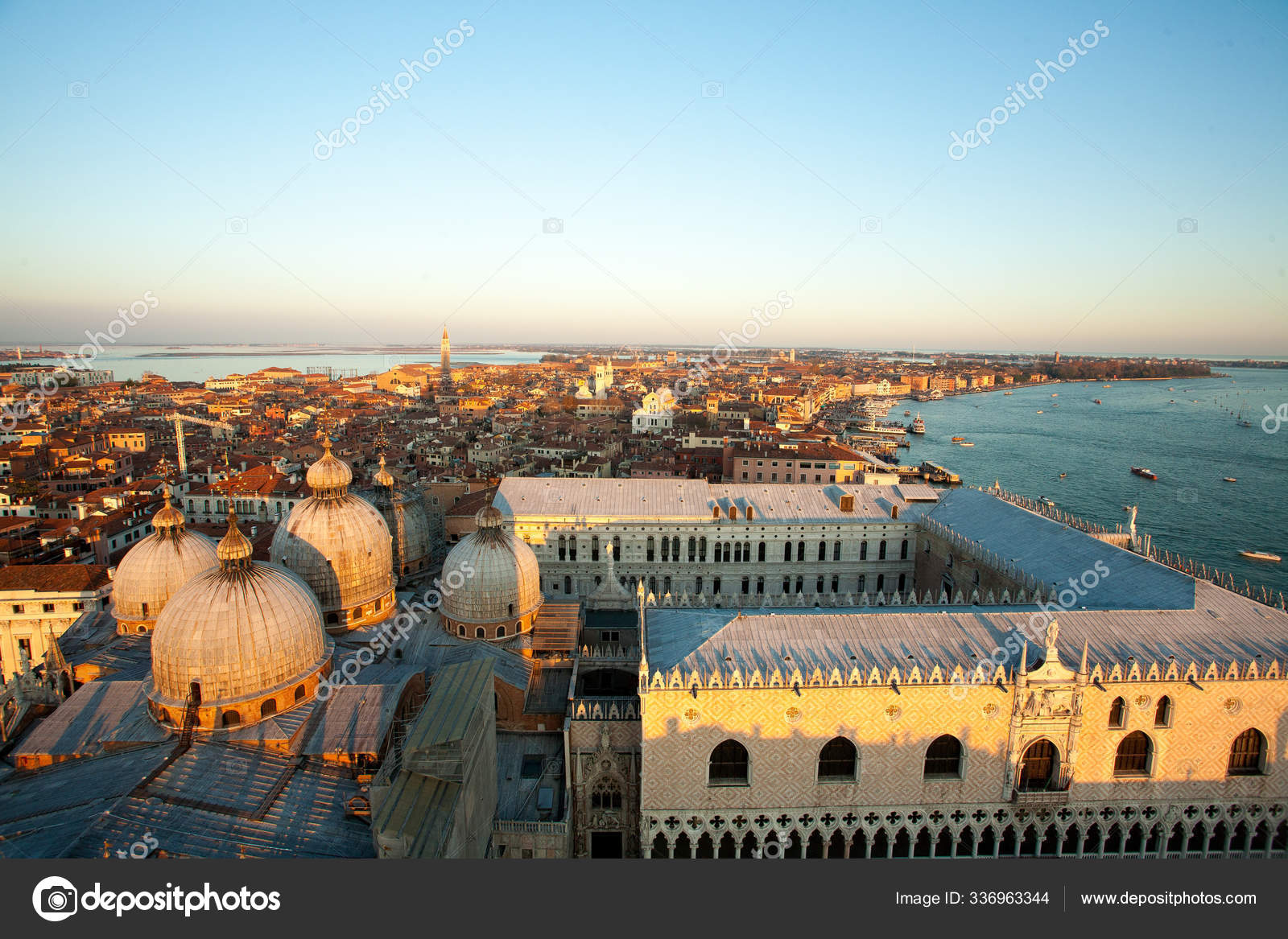 Vista Aerea Veneza Amanhecer Italia Vista Ducal Palacio Marco Italiano Stock Photo C Panthermediaseller 336963344