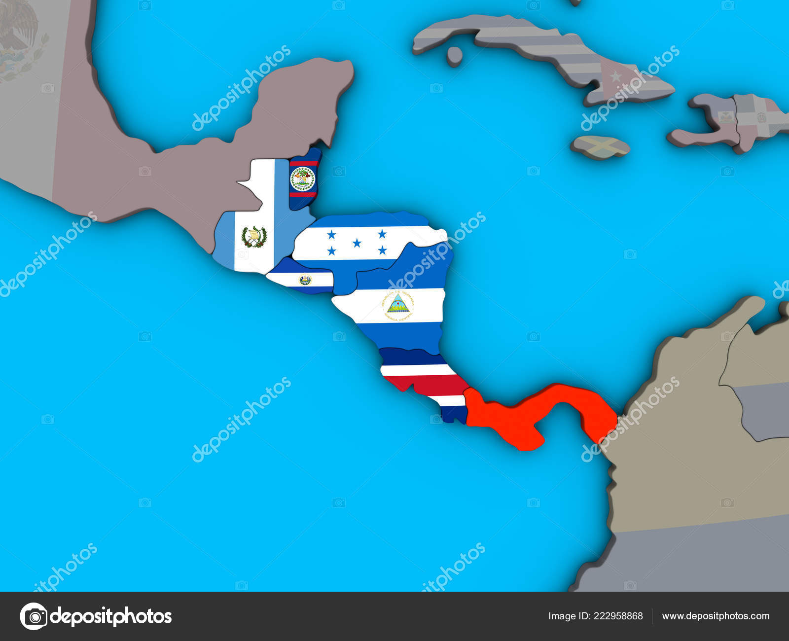 America Central Com Bandeiras Nacionais Embutidas Globo Politico Azul Ilustracao Fotos Imagens De C Tom Griger 222958868
