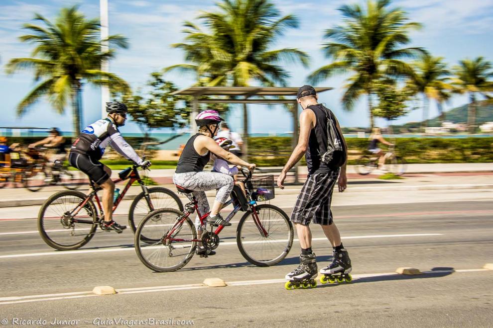Imagem De Uma Familia De Bicicleta E Um Rapaz Andando De Patins Na Avenida Da
