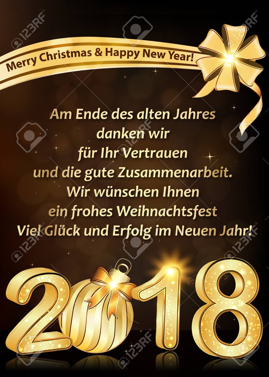 Ano Novo 2018 Cartao Projetado Para Os Clientes De Lingua Alema Traducao De Texto No Final Do Ano Queremos Agradecer A Sua Confianca E Cooperacao Desejamos Lhe Feliz Natal E Feliz Ano Novo