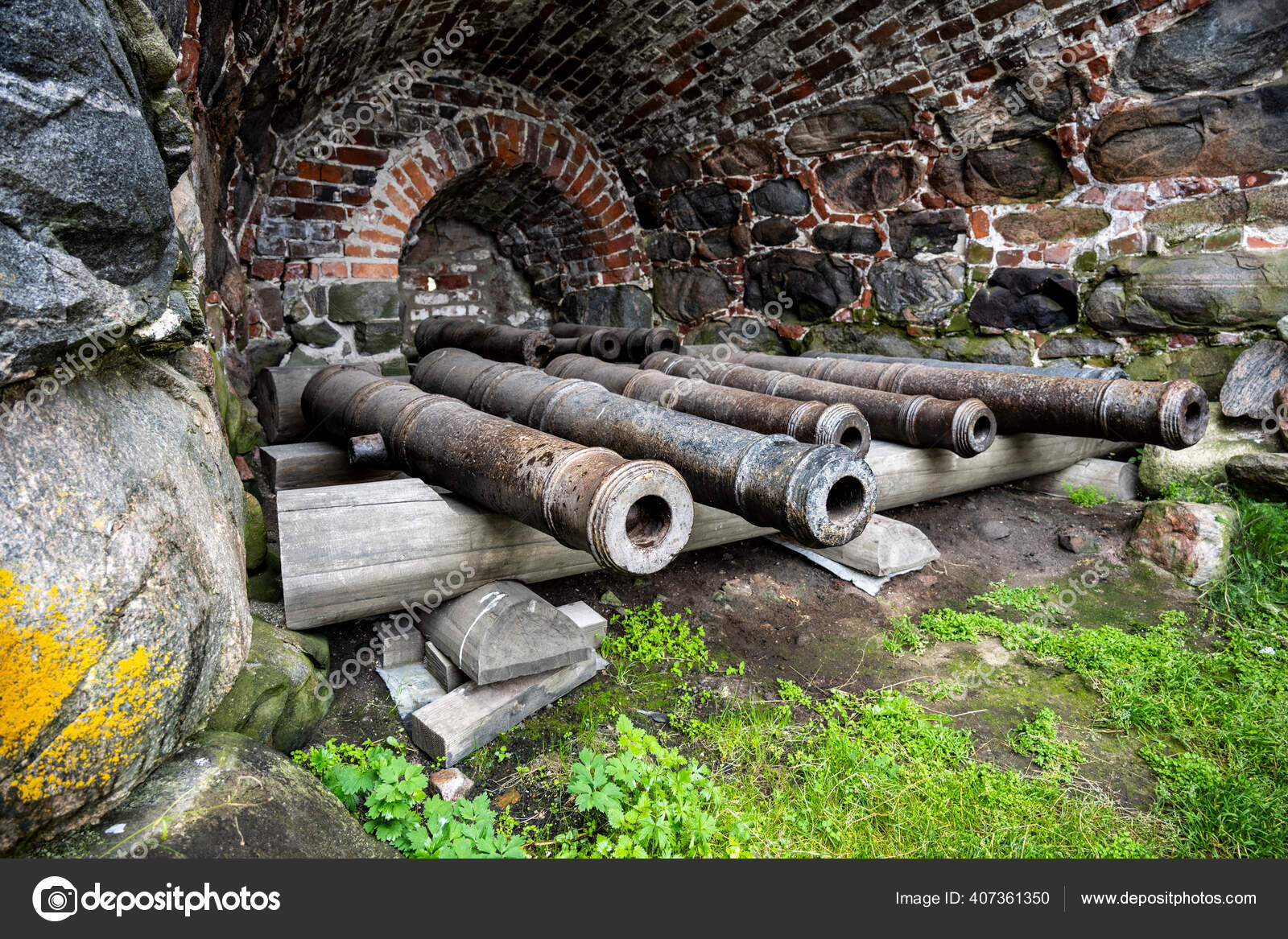 Antigos Canhoes Fortaleza Feitos Ferro Fundido Para Defesa Uma Antiga Stock Photo C Kosmos7764 407361350