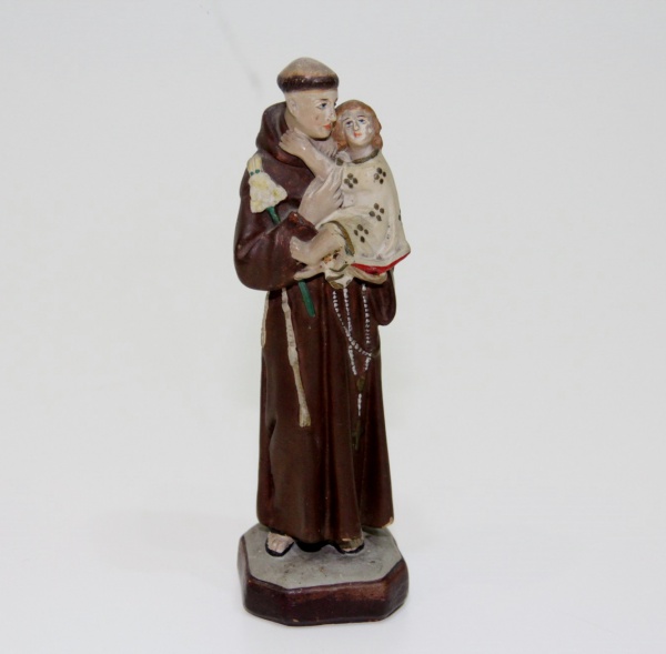 Antiga Imagem Em Gesso Representando Santo Antonio Com