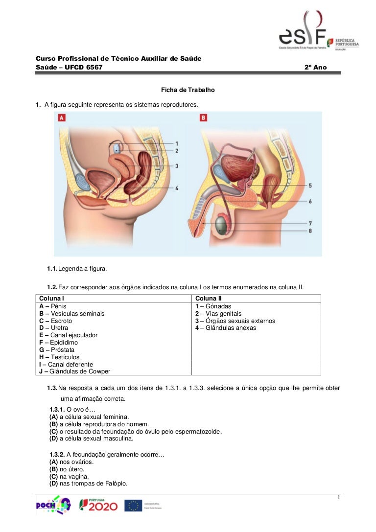 Ficha De Trabalho Sobre O Sistema Reprodutor