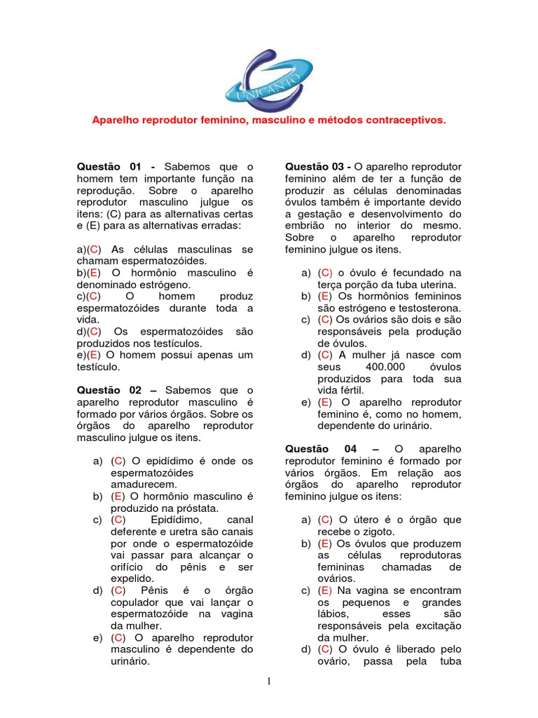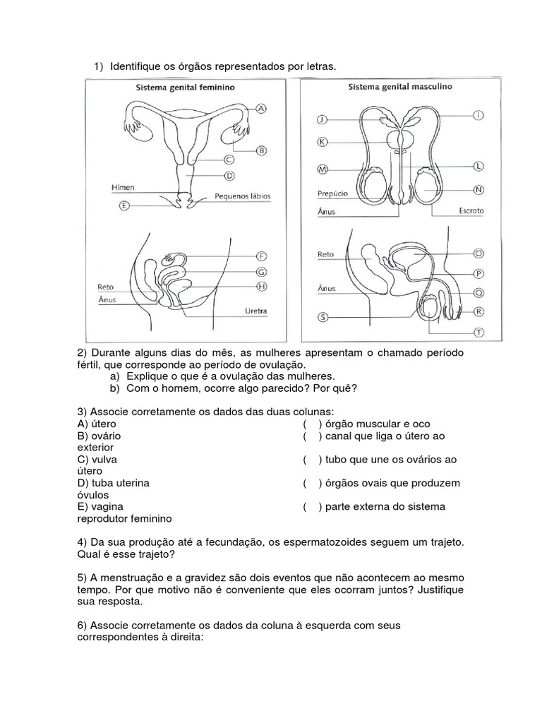 Exercicios Do Sistema Reprodutor Masculino E Feminino Gabarito