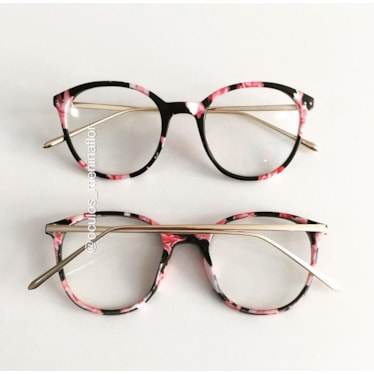 Armacao De Oculos De Grau Redondo Feminino X807 Floral Preto Com Vermelho