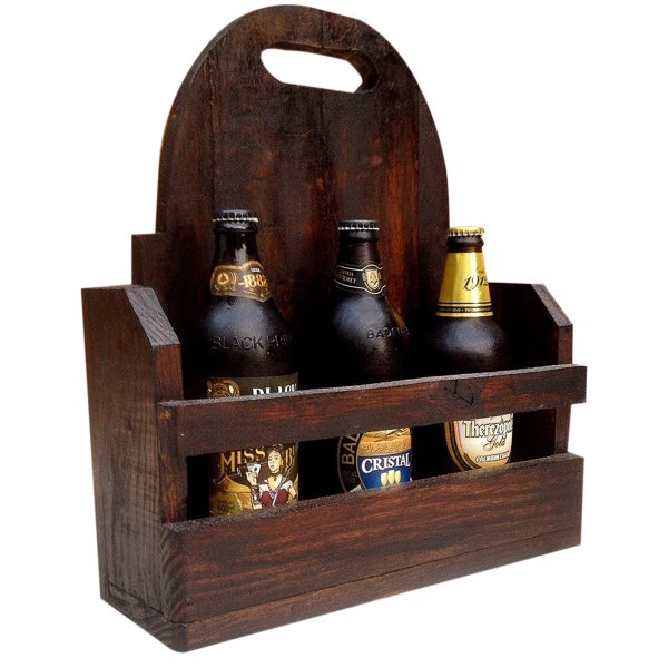 Cesta Porta Bebidas Cervejas Artesanais Em Madeira Rustica Para 03 Garrafas Marrom Madeiramadeira
