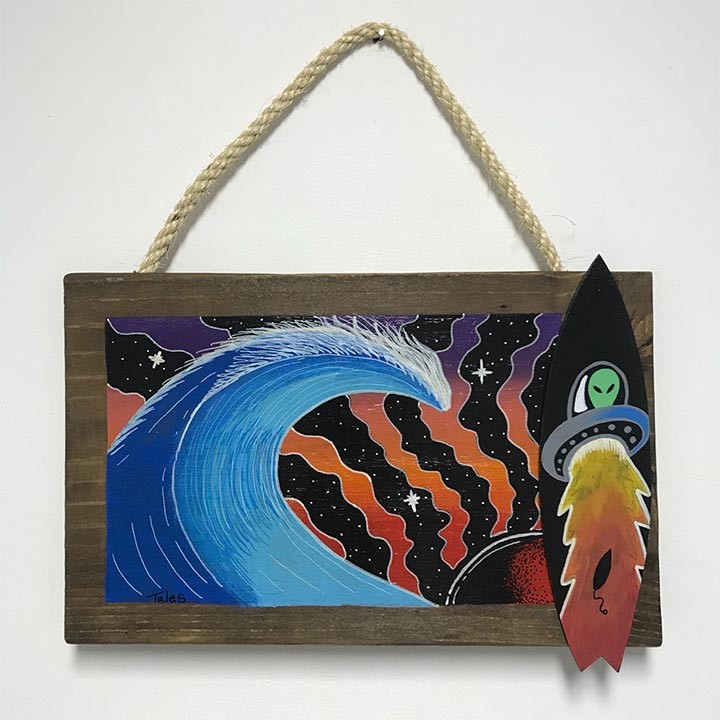 Quadro Surf Pintura Artesanal Em Madeira De Reaproveitamento Rocket Onlysurf