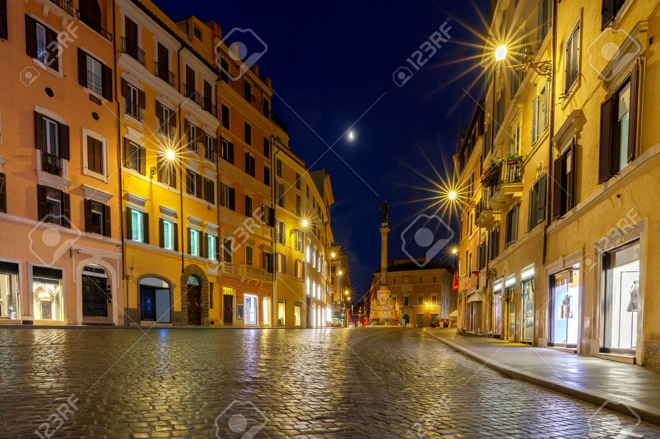Travel To Italy Outdoor Fountain Babuino With Ancient Statue On Via Del Babuino In Rome City In Night Canstock