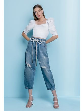 Blusa Feminina France Mademoiselle Manga Curta Decote Redondo Branca Cea