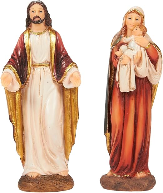 Amazon Com Virgin Figura Madre Maria Y Jesucristo Cifras Par De Santa Pintados A Mano Cifras Resina Religiosa Catolica Estatuas Para La Navidad Natividad Decoracion Del Hogar Christian Culto Kitchen Dining