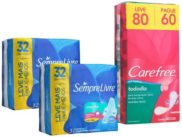 Kit Absorvente Sempre Livre Adapt Plus Com Abas 64 Unidades Protetor Diario Carefree 80 Unidades Absorvente Magazine Luiza