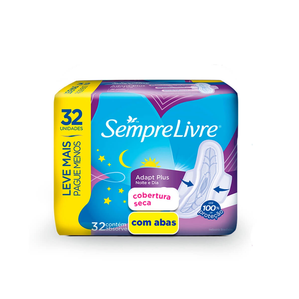Absorvente Sempre Livre Adapt Plus Com Abas 32 Unidades Com Cobertura Suave Com 100 De Protecao Absorvente Sempre Livre Sempre Livre Produtos De Beleza