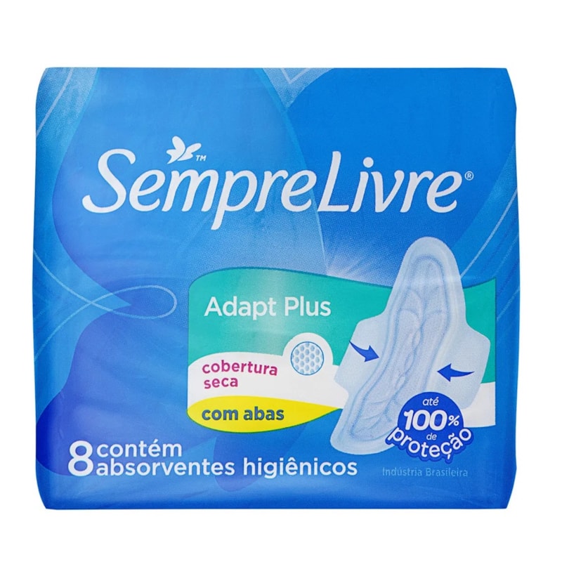 Absorvente Sempre Livre Adapt Plus Seca Com Abas Com 8 Unidades Lojaslivia