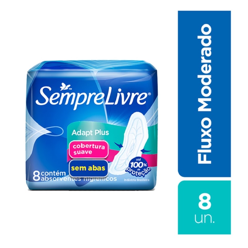 Absorvente Sempre Livre Adapt Plus Suave Sem Abas Com 8 Unidades Lojaslivia
