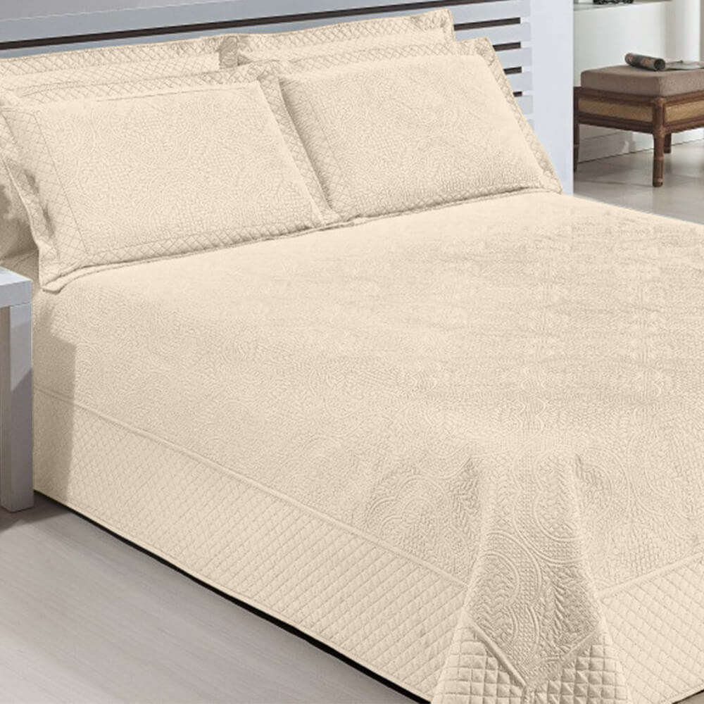 Colcha Casal Queen Elegance Bordada 5 Pecas Palha Vivart Enxovais