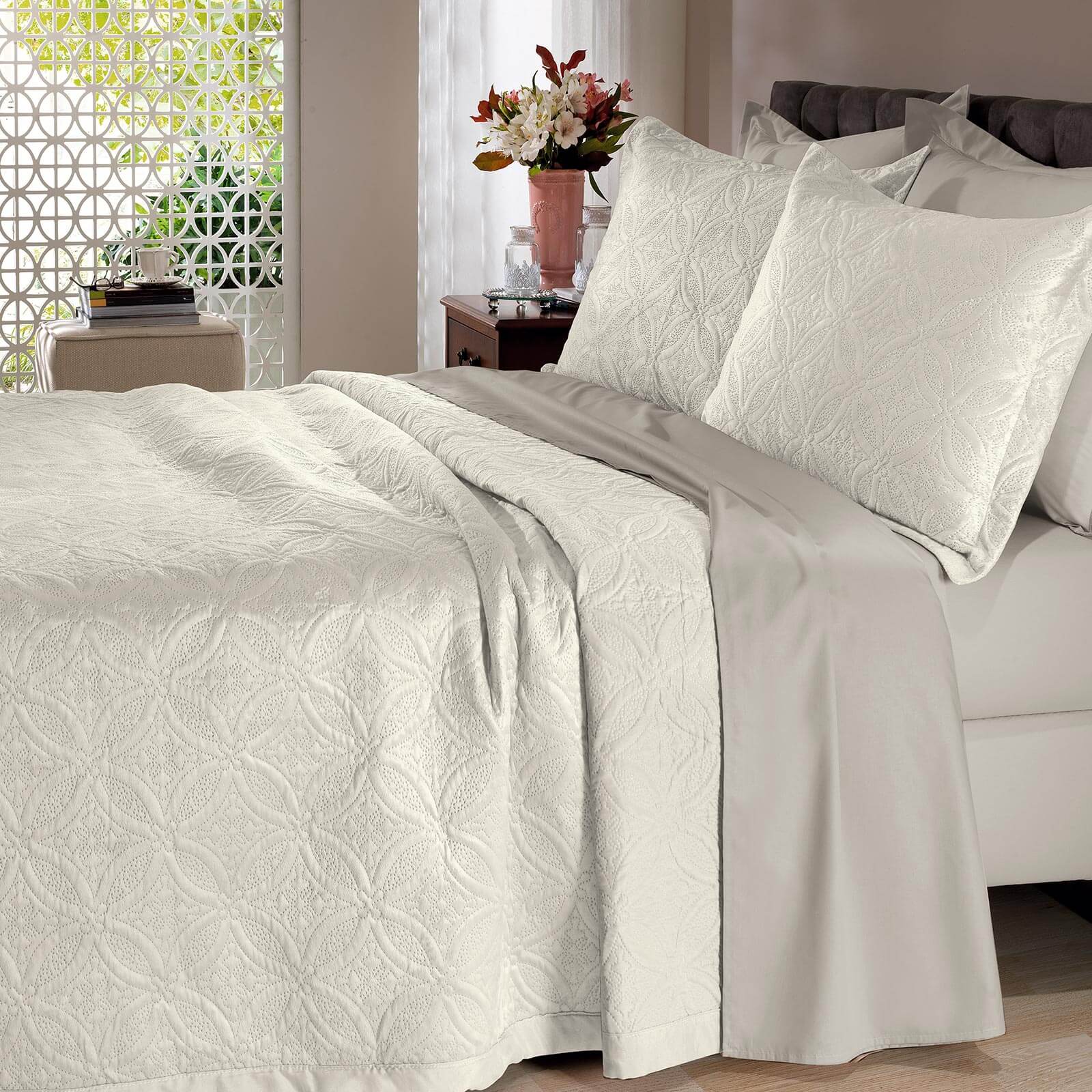 Colcha Microfibra Casal Em Matelasse Sem Costura Com Dois Porta Travesseiros Buettner Lotus Lojabuettner