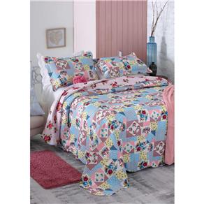 Kit Colcha Casal 3 Pecas Patchwork Boutis Desiree