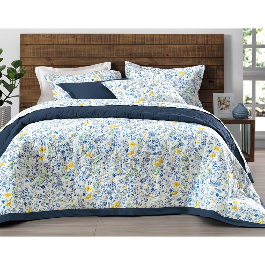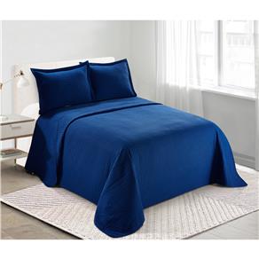 Colcha Casal King Colecao Essenciale Estampado 03 Pecas Azul Marinho Biano