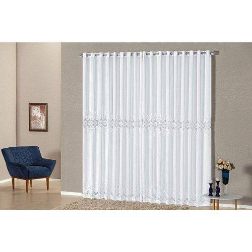 Cortina Sala Bem Me Quer 4 00x2 70 Voal Bordado Floral Ilhos Branco Madeiramadeira