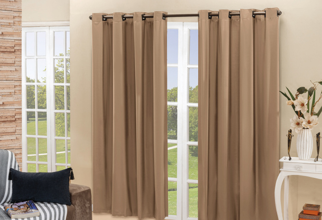 Cortina Para Sala Ou Quarto 2 80m X 1 80m Com Forro Em Tecido Microfibra E Voil Tabaco Com Ilhos Cromado Para Varao No Shoptime