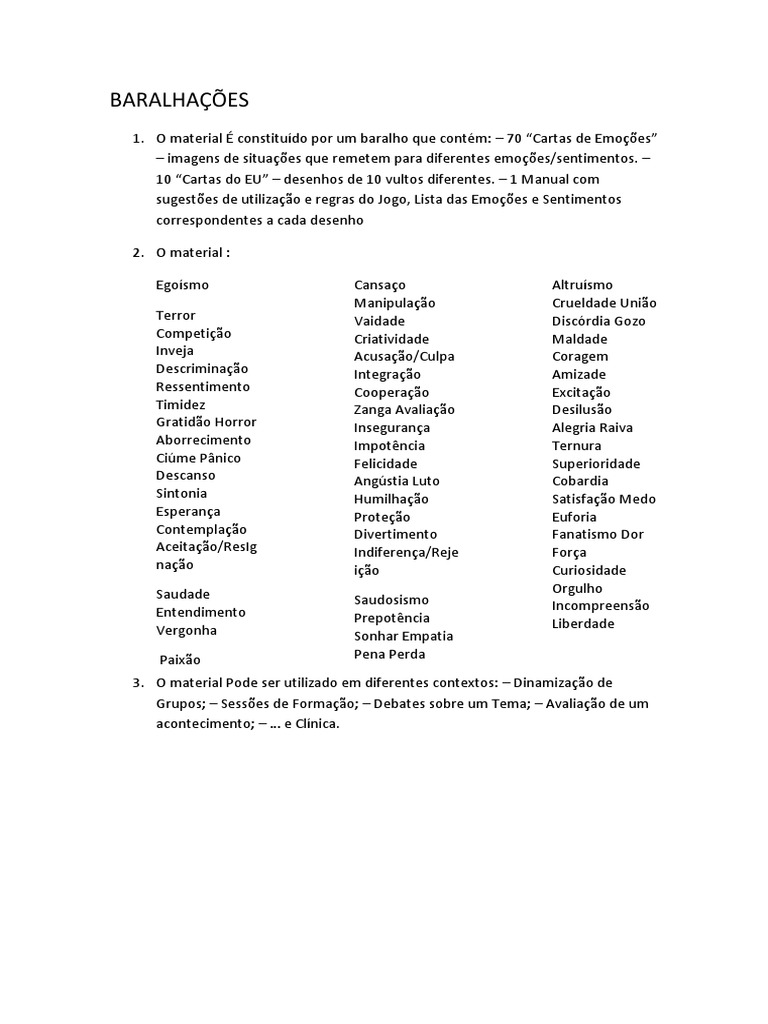 Baralhacoes Emocoes Autoajuda