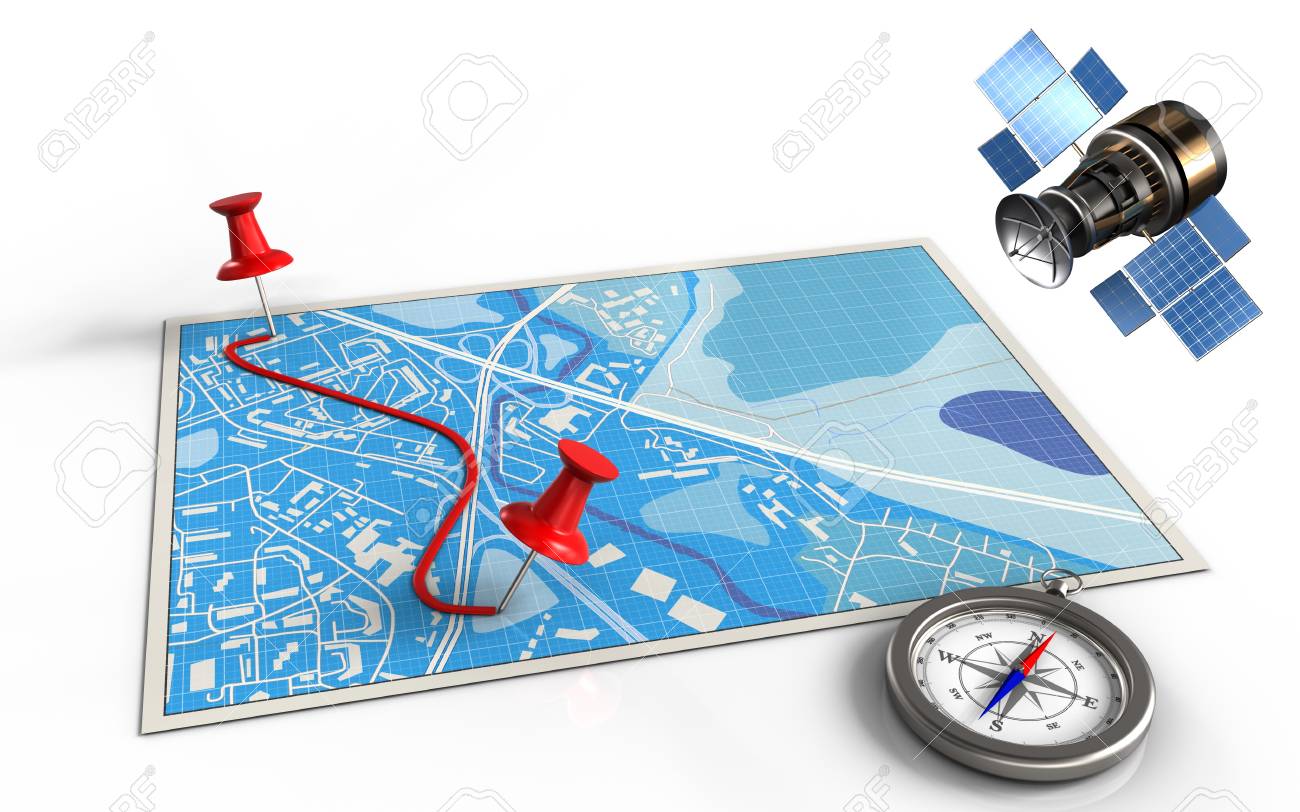 Ilustracion 3d Del Mapa Azul Con Los Pernos Y Via Y Satelite De Los Gps Fotos Retratos Imagenes Y Fotografia De Archivo Libres De Derecho Image 83939591
