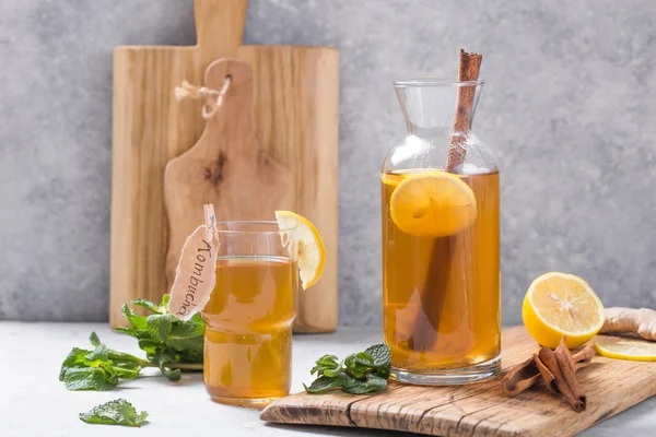 Kombucha Saudavel Do Cha Com Limao E Canela Receita Para Kombucha Caseiro Foto De Stock Imagem De Saudavel Receita 151092594