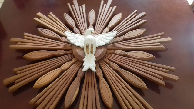 Resplendor Divino Espirito Santo Em Madeira De Cedro 64cmx64cm Lirio Do Vale Artigos Religiosos