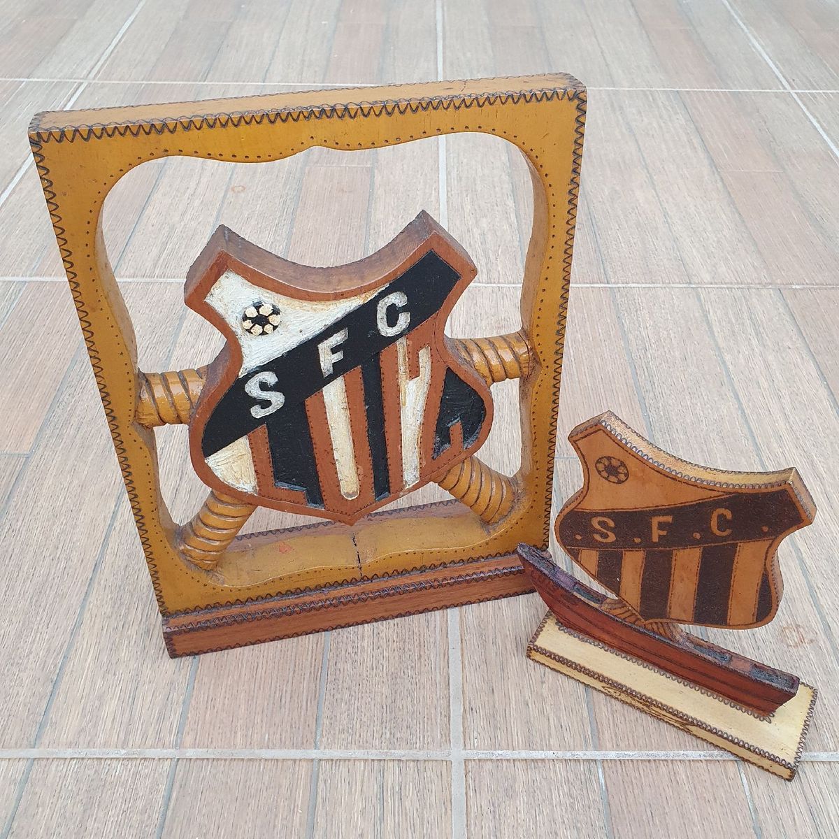 Escudo Santos Em Madeira Cacareco Artesanal Usado 48042532 Enjoei