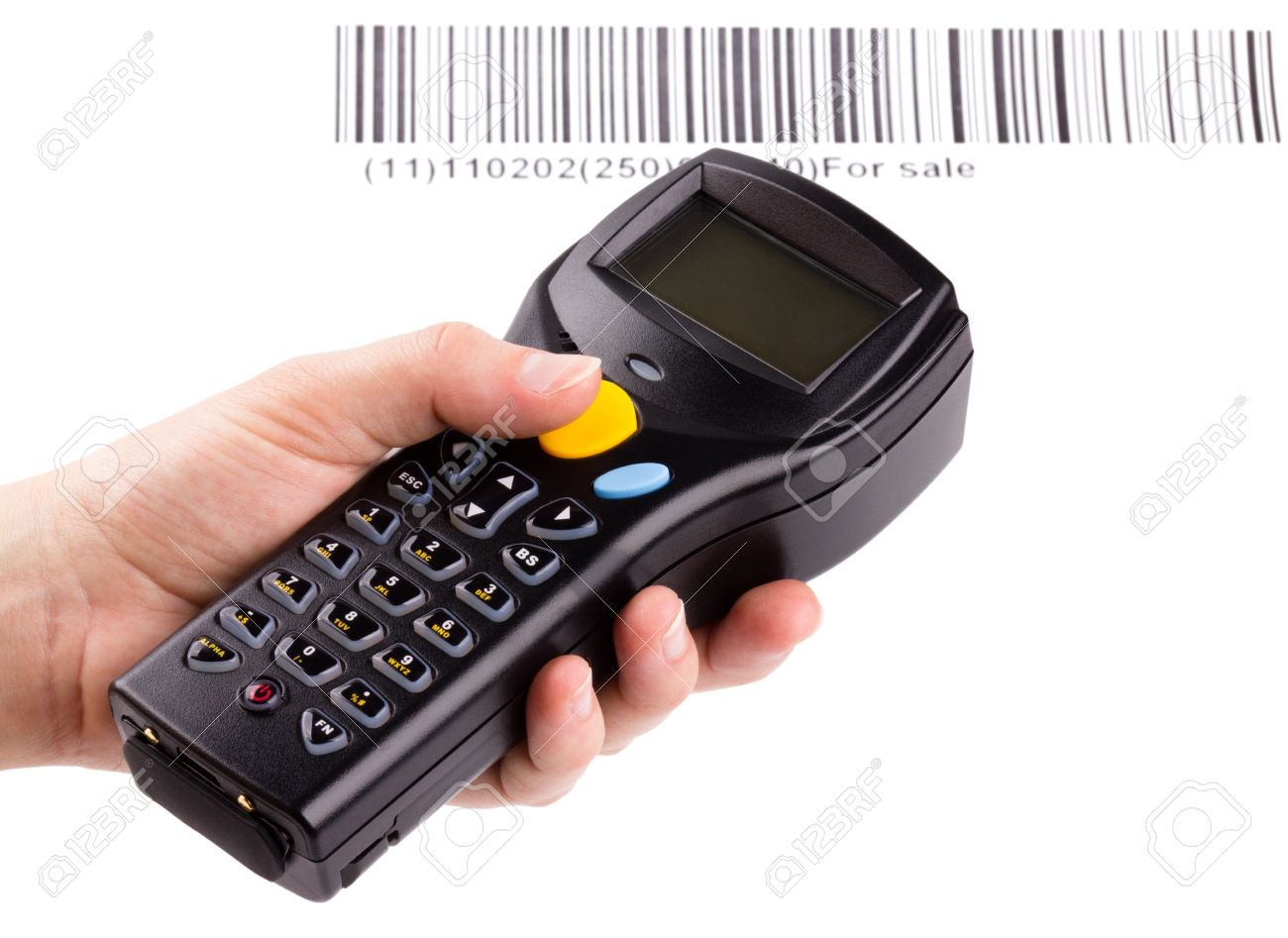 Electronic Manual Scanner Of Bar Codes In Woman Hand Banco De Imagens Royalty Free Ilustracoes Imagens E Banco De Imagens Image 8802897