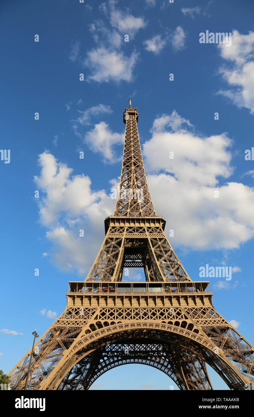 Eiffel Tower Blue Sky Behind High Resolution Stock Photography And Images Alamy
