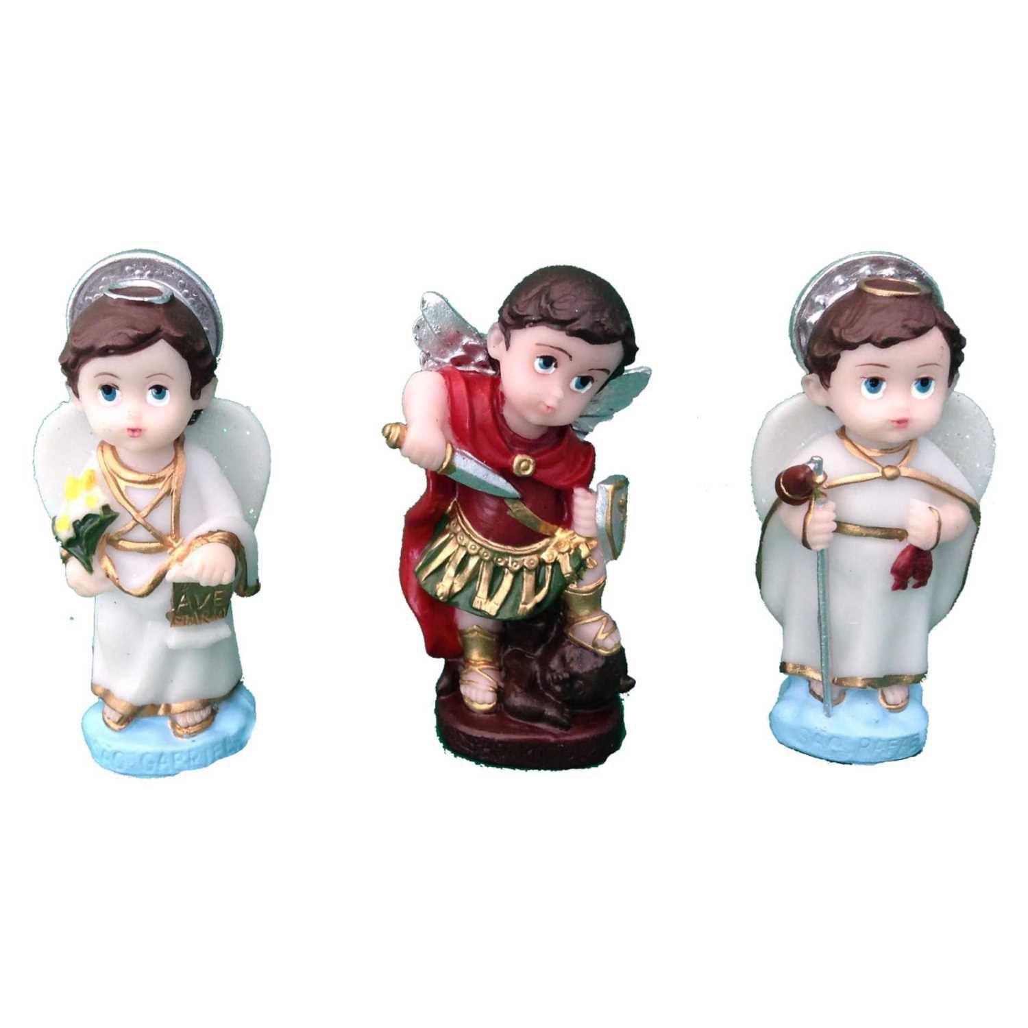 Conjunto 03 Arcanjos Em Resina Colorida 08cm De Altura