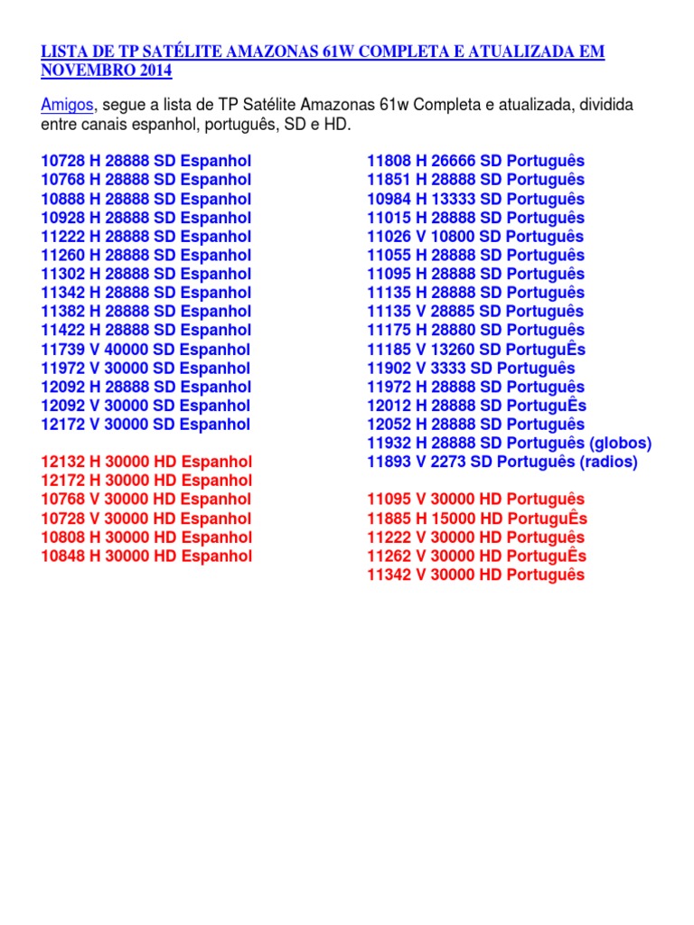 Lista De Tp Satelite Amazonas 61w Completa E Atualizada Em Novembro 2014