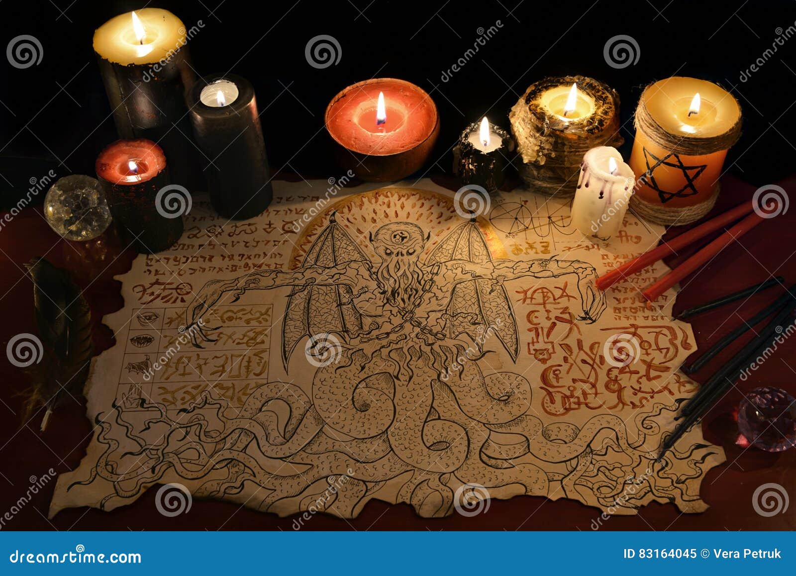 Ritual Da Magia Negra Com Velas Do Manuscrito E Do Mal Do Demonio Imagem De Stock Imagem De Manuscrito Ritual 83164045