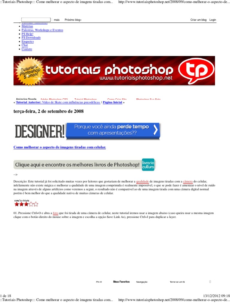Tutoriais Photoshop Como Melhorar O Aspecto De Imagens Tiradas Com Celular Adobe Photoshop Barulho