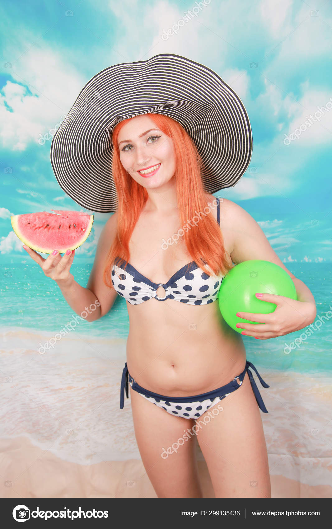 Bonito Plus Tamanho Menina Em Grande Chapeu Com Melancia Desfrutar Stock Photo C Agnadevi 299135436