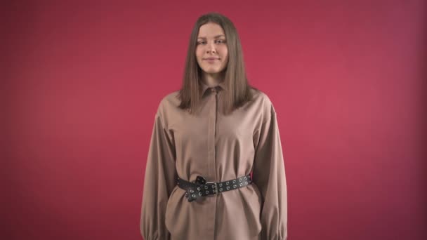 Mulher Sorridente Aponta O Dedo Para O Lado E Pressiona Os Botoes De Toque Invisiveis Video De Stock C Jbroggi 392576198