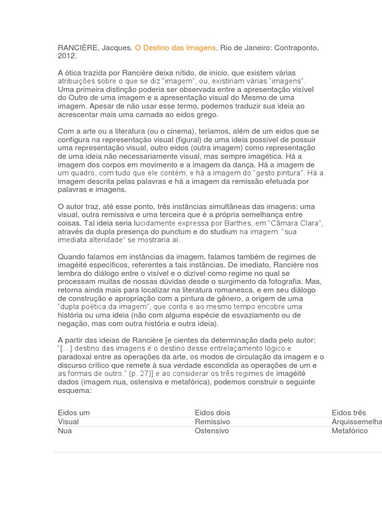 O Destino Das Imagens Ranciere Docx Imagem Subjetividade
