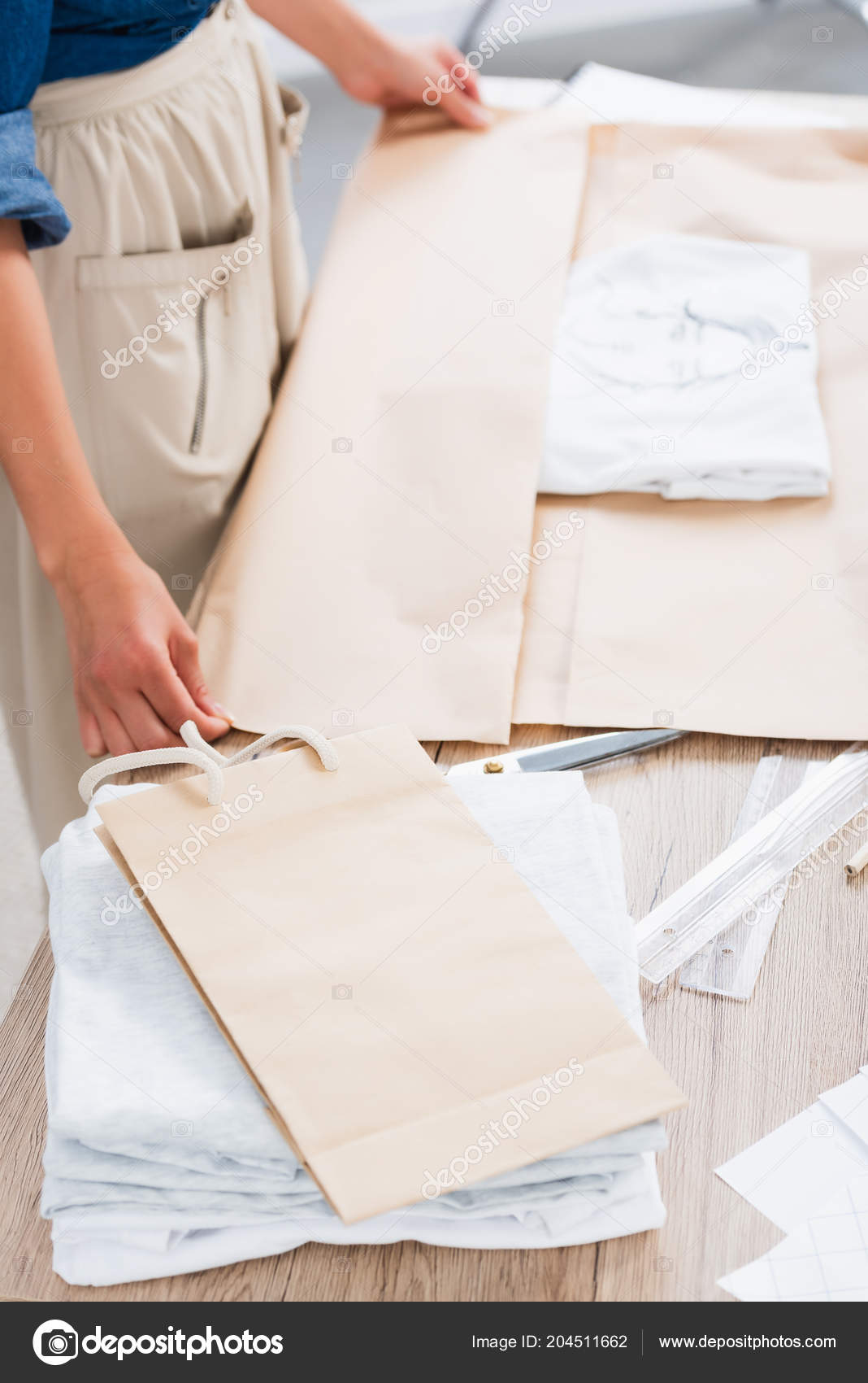 Imagem Recortada Designer Moda Feminino Envolvendo Shirt Com Impressao Pacote Stock Photo C Andrewlozovyi 204511662