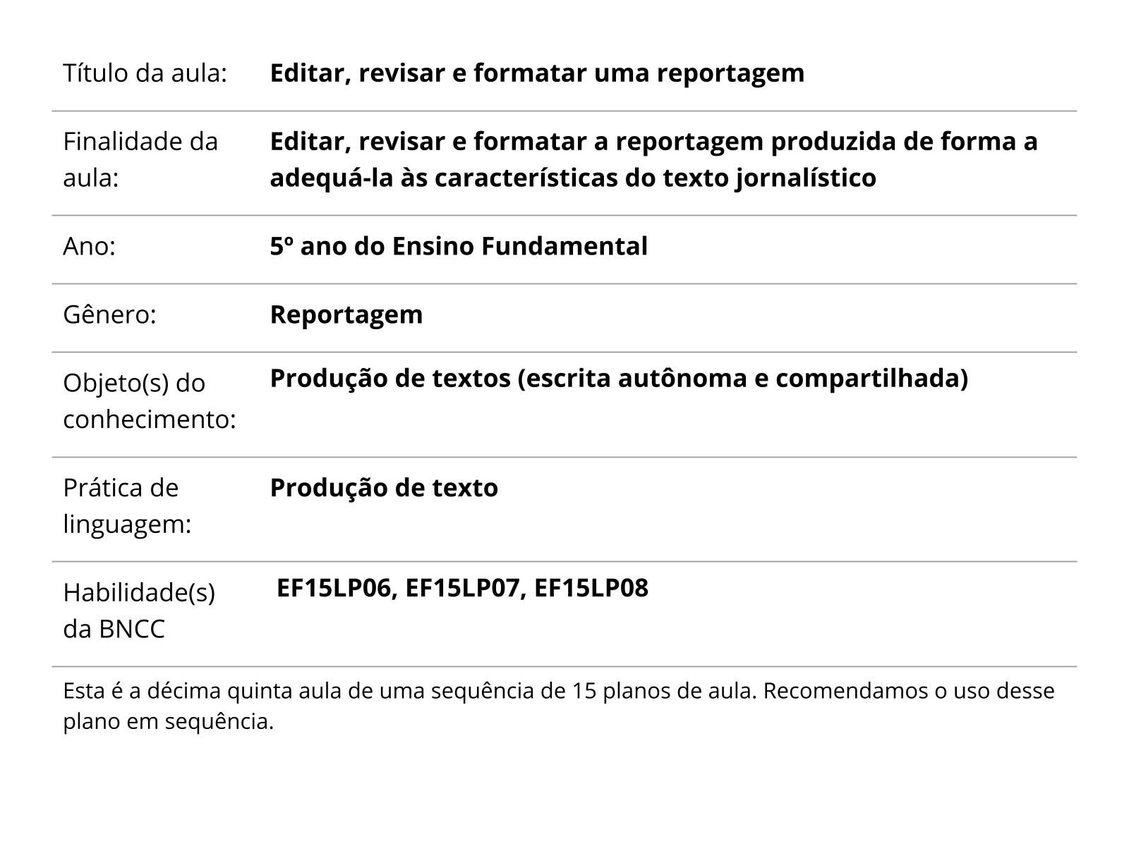 Plano De Aula 5º Ano Lingua Portuguesa Editar Revisar E Formatar Uma Reportagem