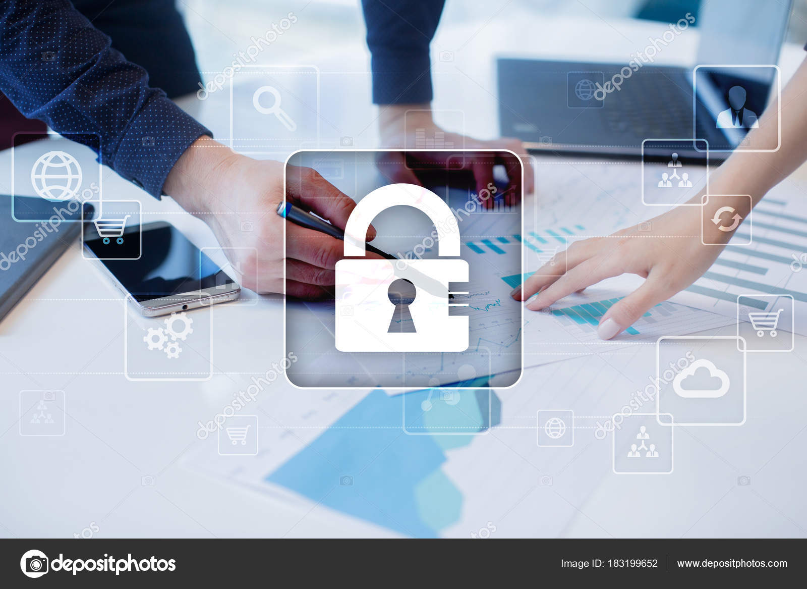 Protecao De Dados Seguranca Cibernetica Seguranca Da Informacao E Criptografia Tecnologia Da Internet E Conceito De Negocio Stock Photo C Wrightstudio 183199652